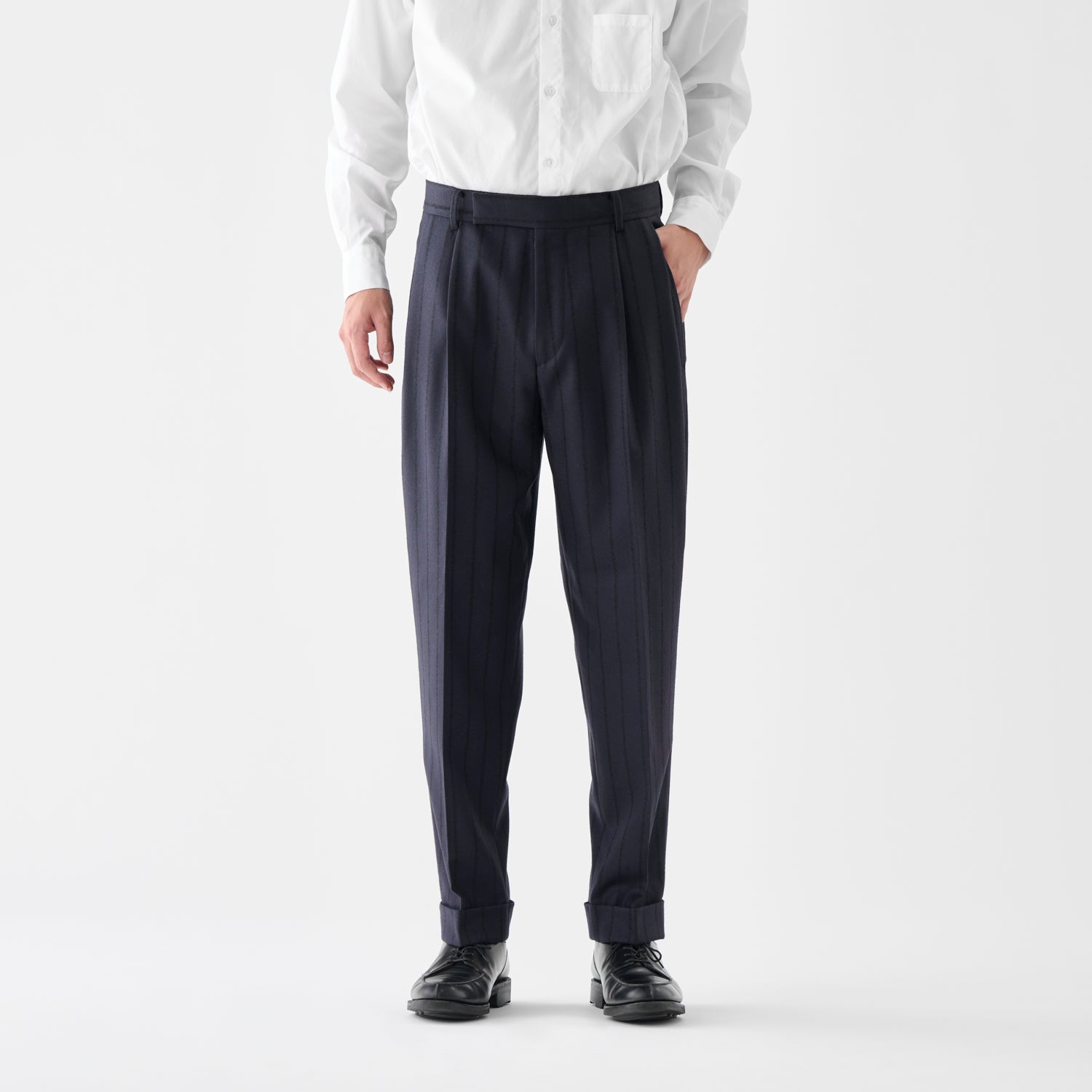 CPT-1 / Boucle Stripe / Navy x Black / 2アウトプリーツ スラックス