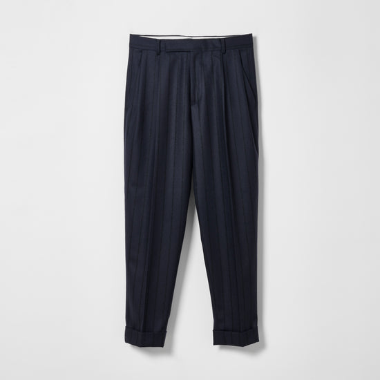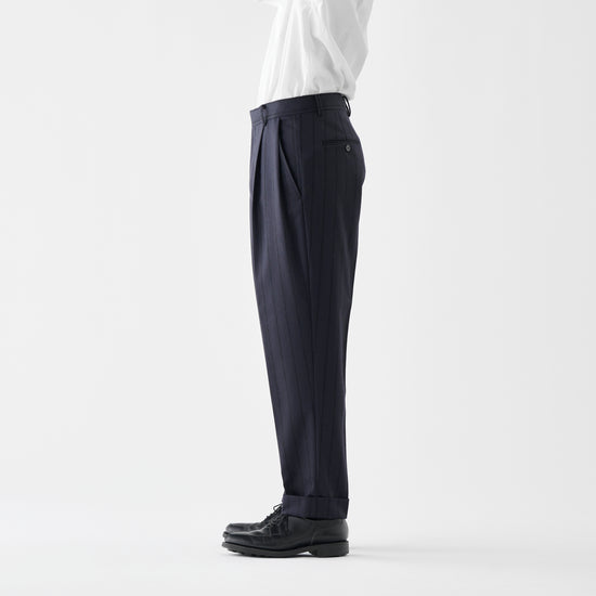 CPT-1 / Boucle Stripe / Navy x Black / 2アウトプリーツ スラックス