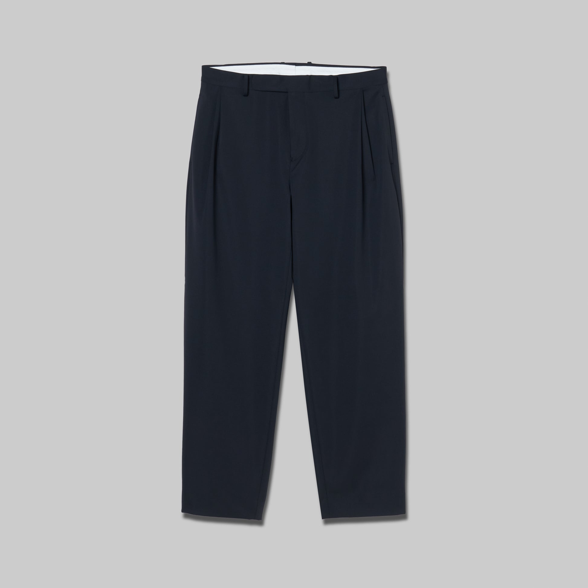 まるで1プリーツのように見える独自の変形2プリーツデザインが特徴的な一本。フロントに立体感を生み出しつつ、上品な雰囲気を演出します。適度なゆとりを持たせたワタリから緩やかにテーパードしたシルエットに仕上げ、ブランドの中ではやや太めのシルエットながらも、洗練されたリラックス感を実現しました。