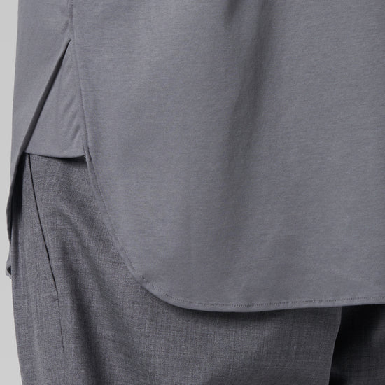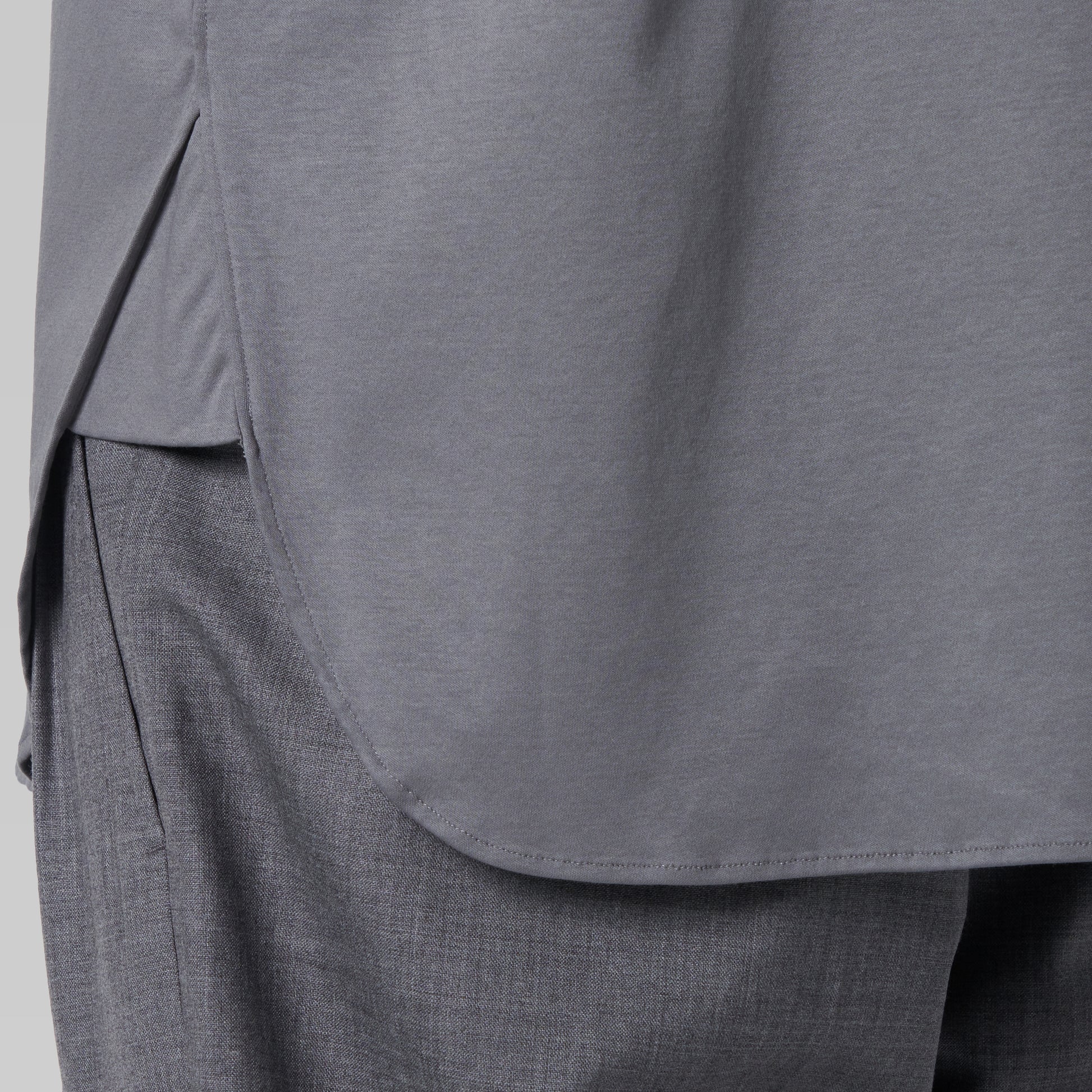 背面には「スプリットヨーク」仕様を採用。ドレスシャツに用いられるこの技術により、肩から背中にかけてのフィット感を向上させ、快適な着心地を実現しました。さらに、日本屈指の縫製技術による「巻伏せ縫い」を採用し、縫い代を極限まで細く仕上げることで、上質で滑らかな仕立てを叶えています。