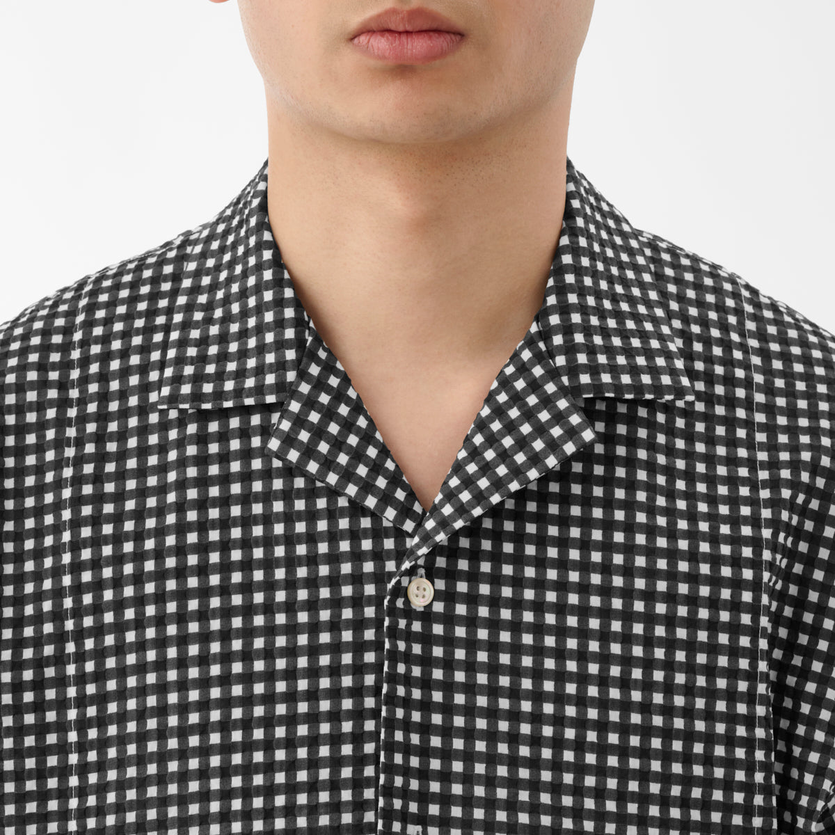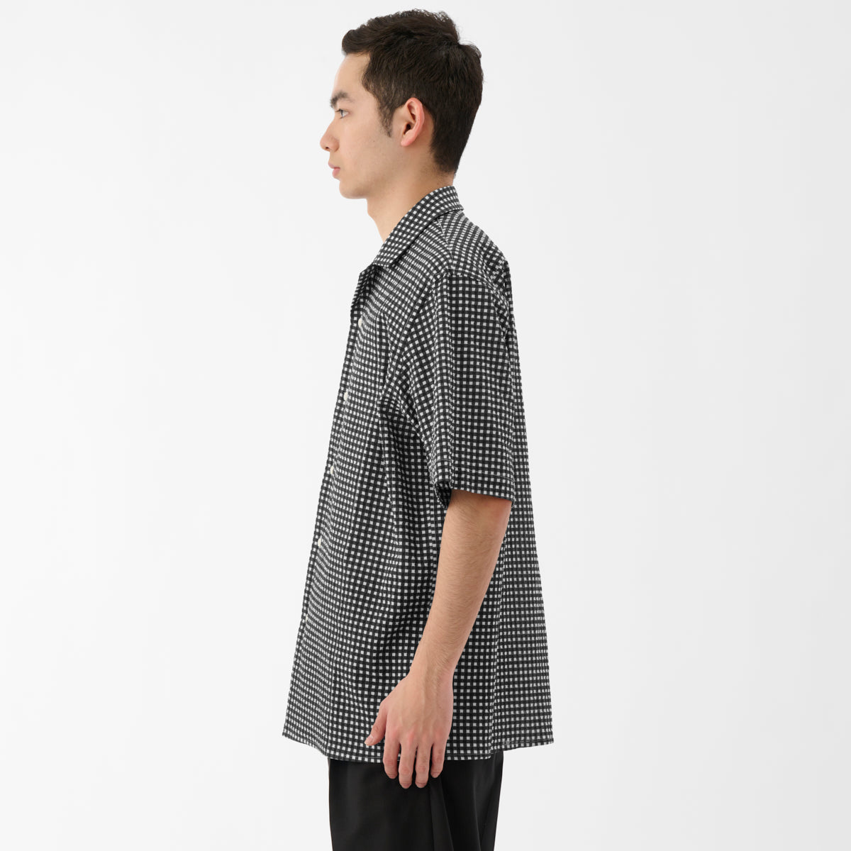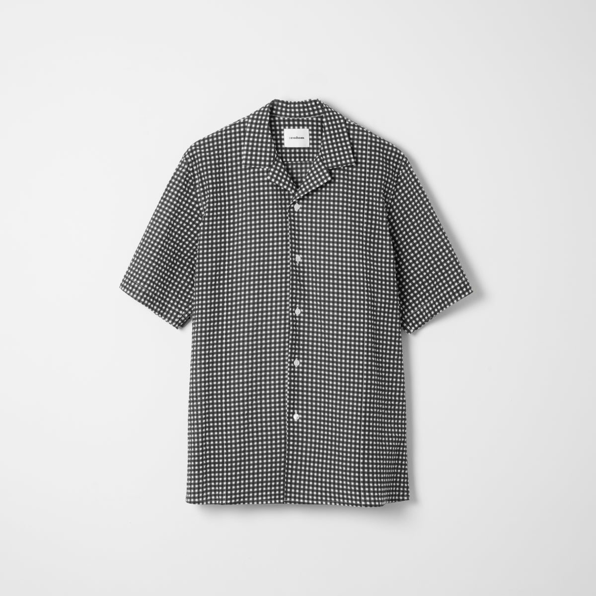 CSH-28 / Kyoto Ripple / Black x White / 半袖オープンカラーシャツ