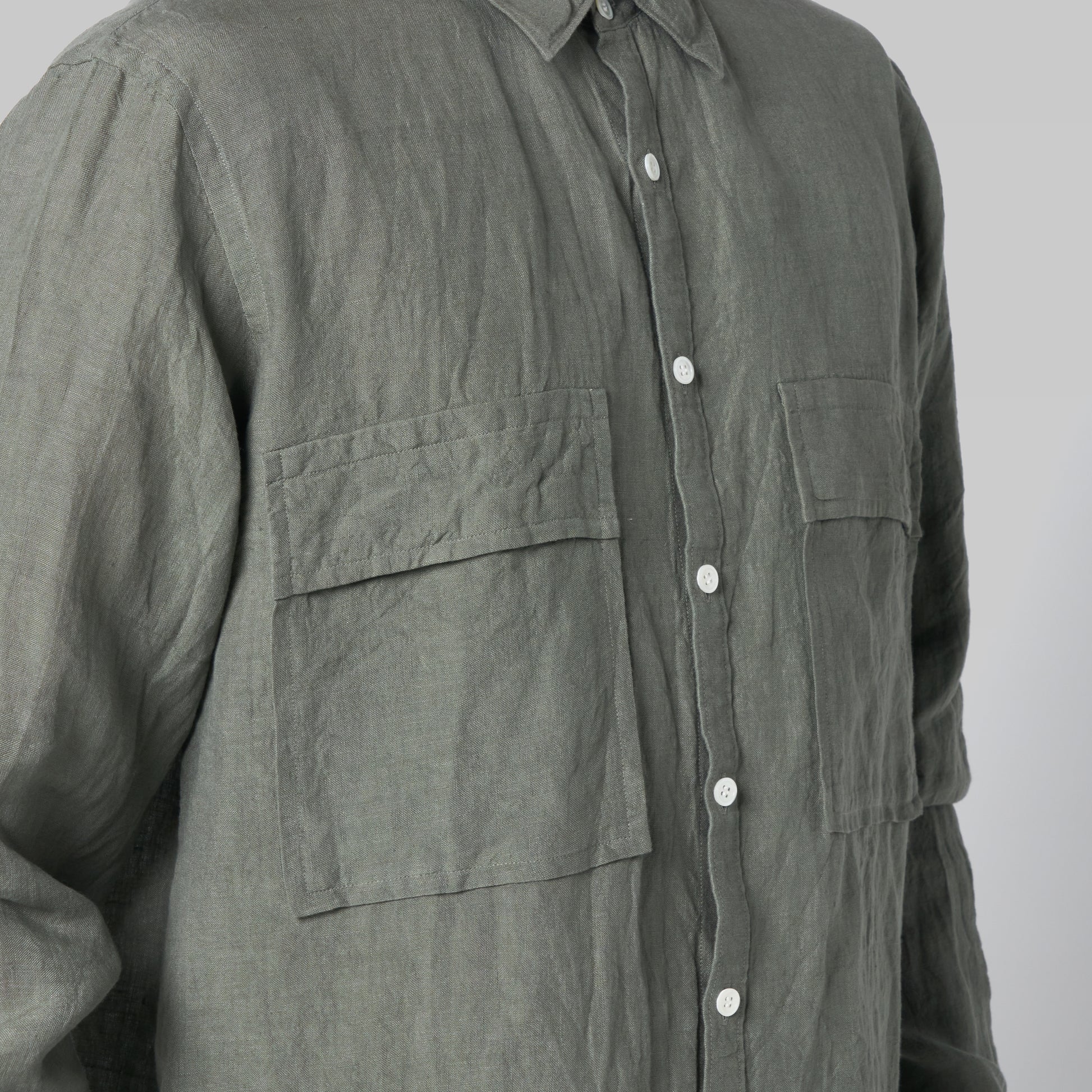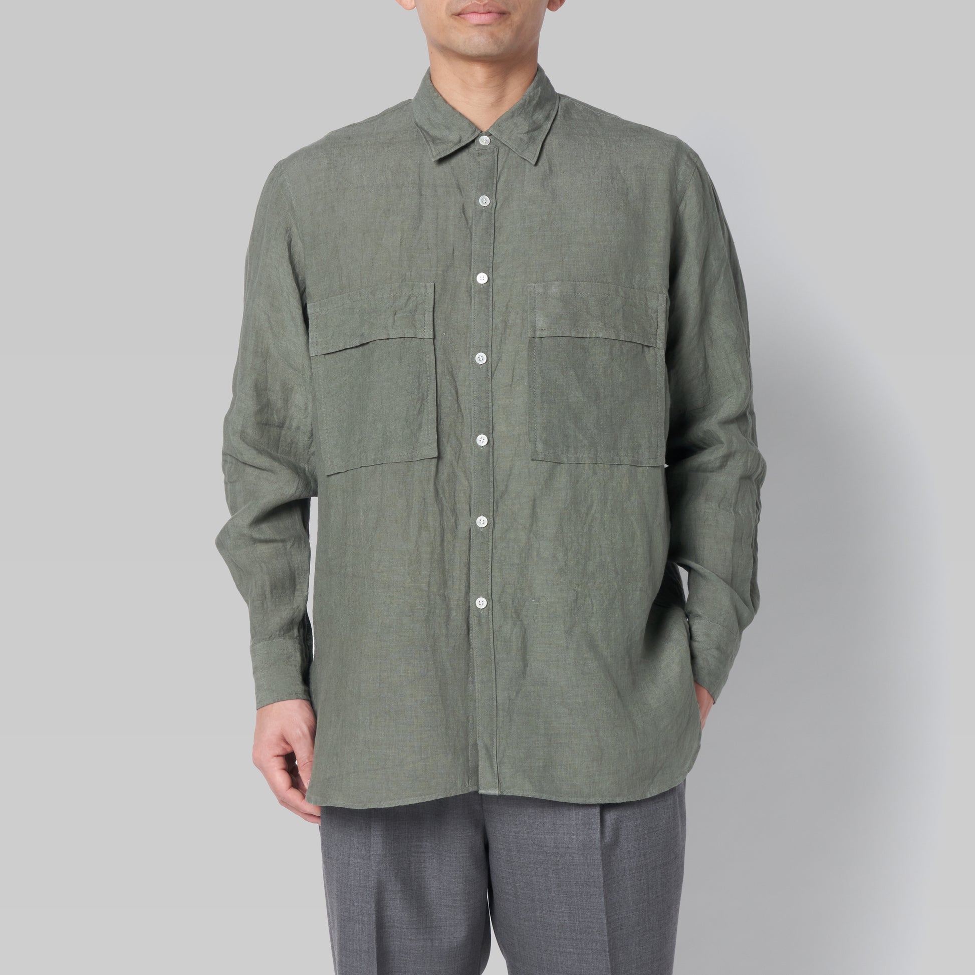 CSH-4 – 1/60 Linen Cloth – Khaki / ダブルポケット シャツ